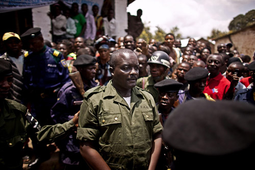 Lt. Col. Kebibi Mutware exits a mobile military tribunal after being convicted of crimes against humanity in the town of Baraka, Democratic Republic of Congo on February 21, 2011. Photo: Pete Muller