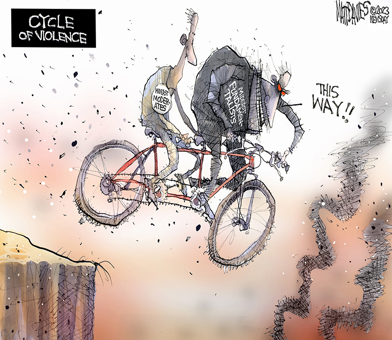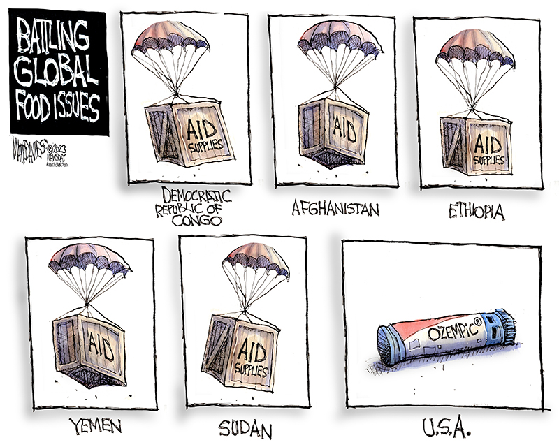 Matt’s portfolio showcased consistently smart and insightful commentaries drawn in a uniquely playful satirical style. His cartoons use simple, striking images captioned with few words. They employ the wit and charm of his children’s book illustrations teamed with the acumen of his prize-winning journalism. In a career that spans 30 years, Davies has created thousands of cartoons and received numerous honors, among them the Pulitzer Prize (2004), The Robert F. Kennedy Journalism Award (2001), and the coveted Herblock Prize (2004, 2019).