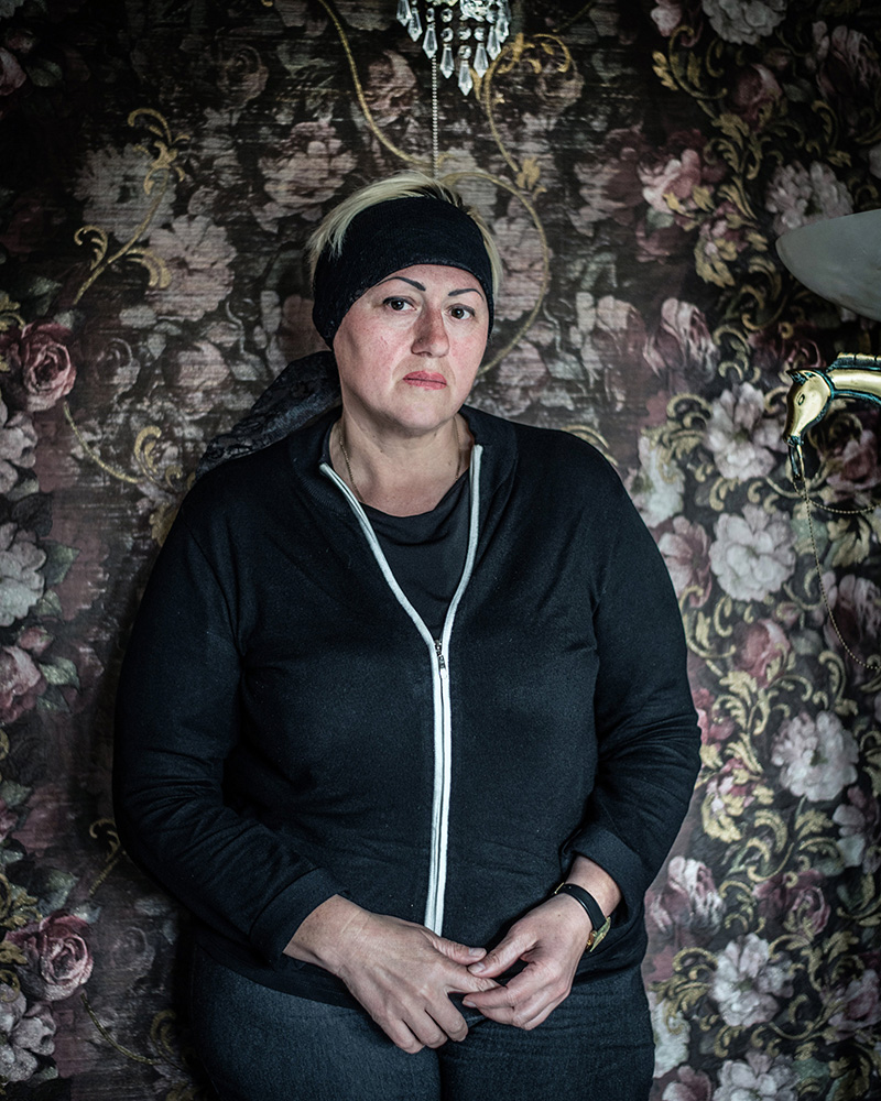 Marina Stanietskaya photographed in Zaporizhzhia, Ukraine, August 18, 2022. Originally from Mariupol, Ms. Stanietskaya transformed the nightclub where she worked into a shelter and hospital early in the war. She now manages a restaurant in Zaporizhzhia, hiring workers who, like her, fled from Mariupol. Photo: Justyna Mielnikiewicz