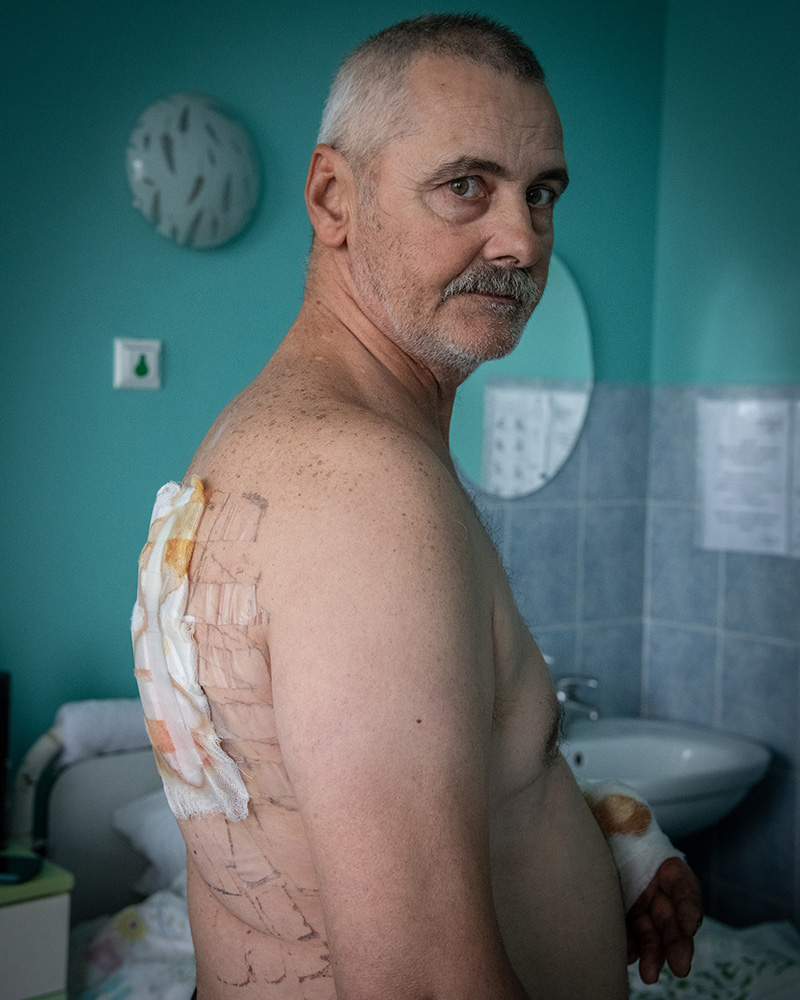 Svistun Yuri was injured in a rocket attack on his building in November, 2022. Russian attacks on the local hydropower station have left the hospital where Mr. Yuri has been staying with power outages. Photo: Justyna Mielnikiewicz