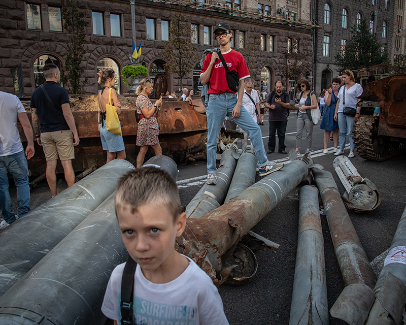 On Ukrainian Independence Day, the government opened an exhibition where locals can see the remnants of cruise missiles and other conventional rockets laid out on the streets of Kyiv, Aug. 24, 2022. Six months into the war, cruise missiles remain the most feared of Russian weapons. As of August 2022, the Ukrainian Government estimates Russia has fired close to 3500 rockets at Ukraine. Though some have targeted military infrastructure, the majority have hit civilian targets. Photo: Justyna Mielnikiewicz