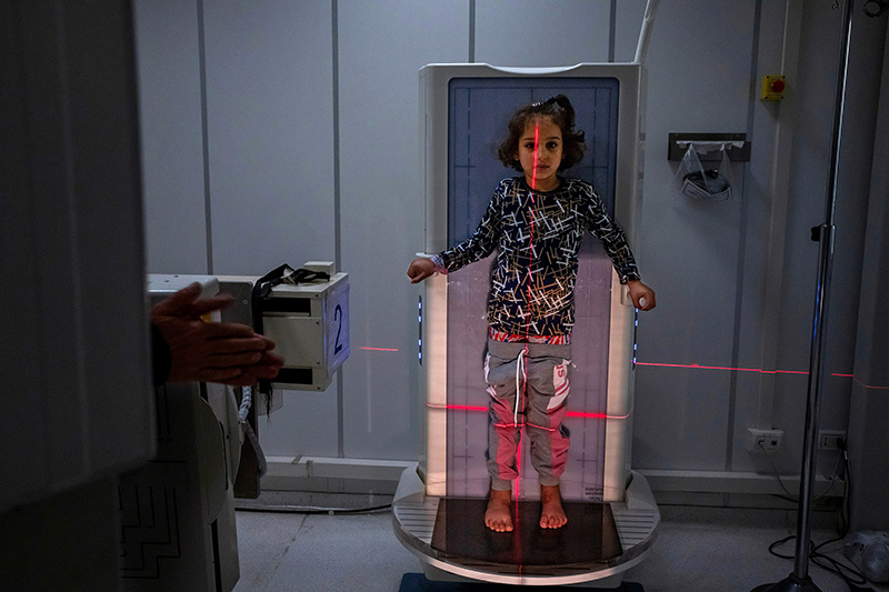 Sarah Yusuf, 5, receives an X-ray ahead of surgery in Bologna, Italy. Her leg and pelvis were broken when her Gaza town was bombed. Photo by Nariman El-Mofty for The New York Times