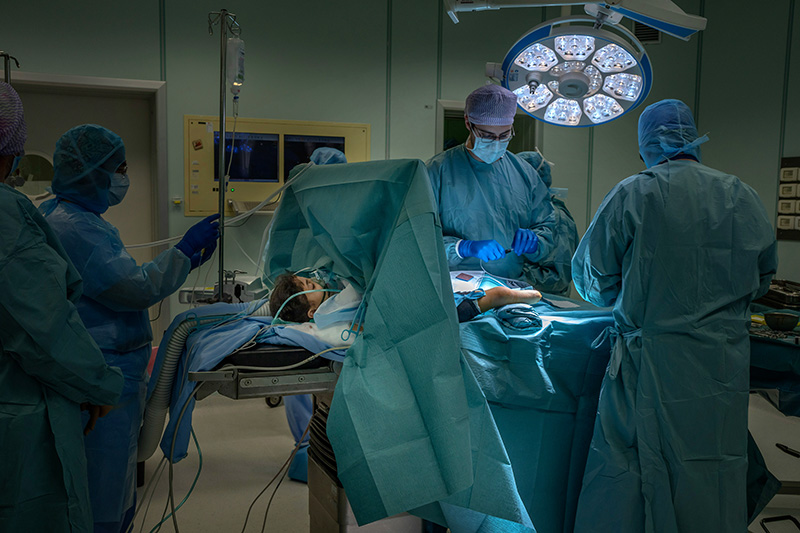 In January, an explosion ripped through the southern Gazan village of Al Mawasi, killing Shaymaa’s grandmother, badly injuring her grandfather and mangling the 5-year-old’s foot. The hospital where she was taken had run out of anesthesia, alcohol or anything but murky water to clean the wound. Doctors hurriedly amputated her foot before turning to other casualties. When she was evacuated to Bologna, Italy, doctors said she would have to face a second amputation to stop an infection from spreading. They operated on Shaymaa in February. Photo by Nariman El-Mofty for The New York Times