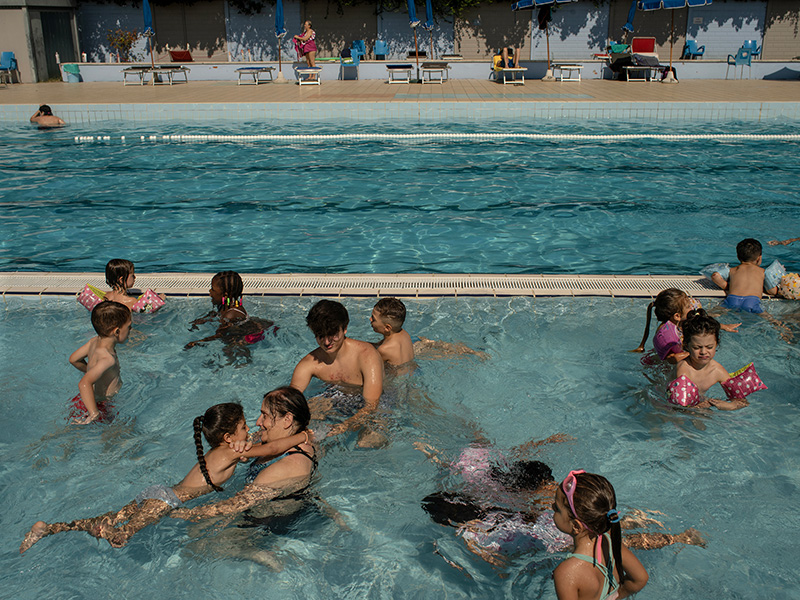 At summer camp in Bologna, no one noticed Shaymaa’s prosthetic leg until it was time to swim. Then the Italian campers peppered her with questions about her leg, which she ignored at first. After swimming, one classmate cautiously tried to touch her prosthesis. Shaymaa frowned at the boy and covered herself up. “Ha fatto la guerra,” one child said. She went to war. Photo by Laura Boushnak for The New York Times