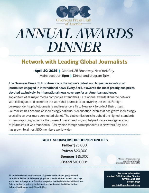 WATCH LIVE: 86th Annual Overseas Press Club Awards
