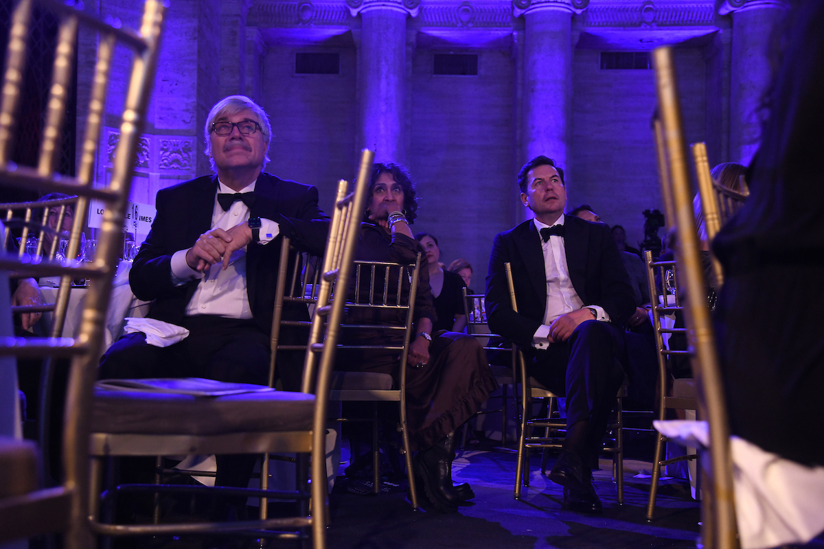 Former OPC Governor Rod Nordland and colleagues watching the program from the New York Times table. Photo: ©Jennifer S. Altman